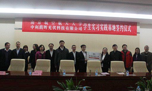 索比光伏网讯:4月10日,中利腾晖光伏科技有限公司与南京航空航天大学在中利腾晖举行学生实习实践基地签约授牌仪式。南京航空航天大学教务处王敬东副处长、材料科学与技术学院梁文萍副院长、材料科学与技术学院、江苏省能量转换材料与技术重点实验室沈鸿烈副主任等一行8人及沙家浜副镇长姚彩莲、沙家浜科技办主任朱丽亚、中利腾晖副总裁倪志春、技术研发总监魏青竹、总裁办总监屈庆华和人力资源部高级经理雷先凤等出席了签约授牌仪式。
