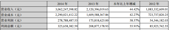 报告期内,公司实现营业收入306,224.74万元,比去年同期增长44.42%;实现营业利润27,878.85万元,比去年同期增长58.57%;归属于母公司股东的净利润为28,328.64万元,比去年同期增长56.48%。