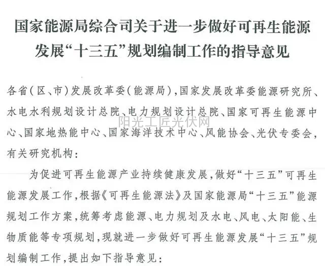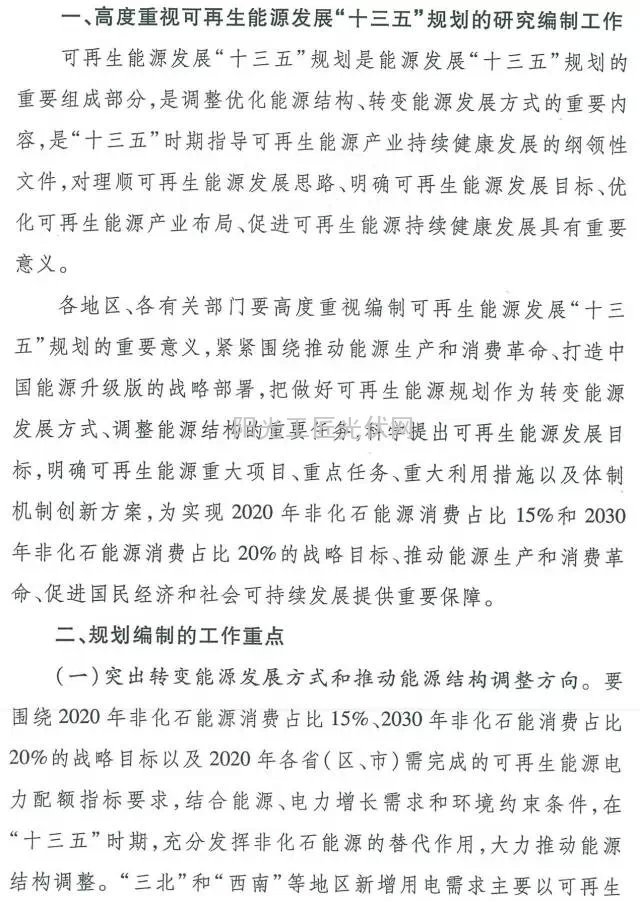 可再生能源发展“十三五”规划编制工作的指导意见