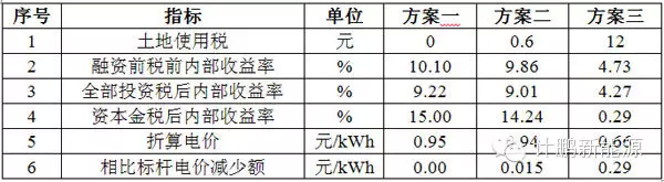 1、当按照最低0.6元/m2/年取费,资本金内部收益率降低了0.76%,相当于电价降低了0.015元/kWh,对项目收益影响较小,各项指标仍在行业基准收益率以上;