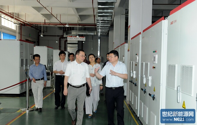 梁敏处长一行首先在何思模董事长的陪同下参观了公司的总装大楼,详细了解公司自主研发生产的高端电源和新能源光伏发电产品。在光伏逆变器总装车间,何思模董事长向梁处长详细介绍了公司正大力发展的新能源产业。他说,易事特凭借领先的科研平台、高端科研团队,成功开发出具有世界领先水平的光伏发电产品,其不仅技术先进,性能稳定、可靠、安全,还具有完善的保护功能,能效转换率高,在新疆、甘肃、青海、江苏、宁夏、广东等国内外许多大型太阳能光伏发电项目中取得了很好的社会效益与经济效益。易事特自主研发的新能源光伏逆变器等核心产品及遍布全球的成功应用案例,得到了梁敏处长一行的齐声赞誉。