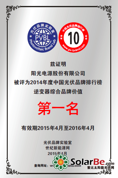 此次排行榜对光伏逆变器供应商进行了包括业绩表现、媒体及客户评价、技术表现以及可持续性发展等因素在内的综合性调研,并以出货量为主要评价依据选出不同品牌的价值排名。“阳光电源在2014年继续保持业绩高速增长,轻松卫冕第一品牌”,这是排行榜对蝉联冠军阳光电源的评价。