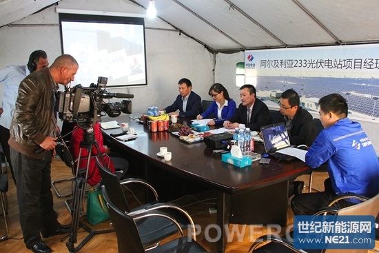 4月22日,阿尔及利亚国家电视台阿语频道记者到水电十三局光伏电站项目经理部采访。