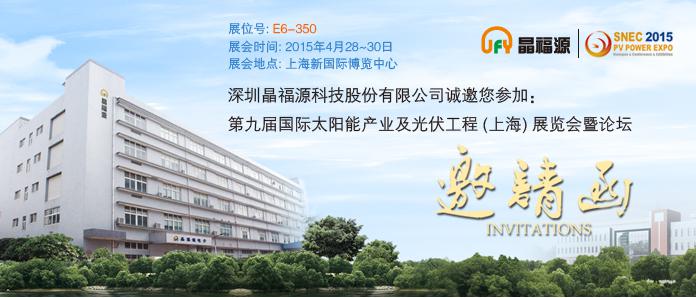 索比光伏网讯:SNEC第九届(2015)国际太阳能产业及光伏工程展览会暨论坛即将于2015年4月28日在上海新国际博览中心拉开帷幕,深圳晶福源科技股份有限公司将携最新研究成果展开本次光伏博览之旅。欢迎各位莅临E6馆-350号晶福源展馆参观指导。