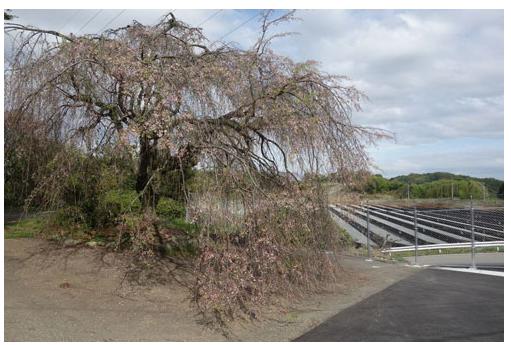 图2:电池板附近还保留着垂枝樱花(摄影:日经BP社)