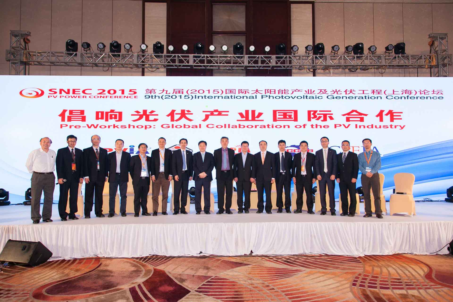 4月26日下午,作为第九届(2015)国际太阳能产业及光伏工程(上海)展览会暨论坛的序曲,“倡响光伏产业国际合作”主题活动在上海浦东隆重举行。亚洲光伏产业协会主席、协鑫集团董事长朱共山,中国光伏行业协会理事长高纪凡,中国可再生能源学会秘书长李宝山出席会议并致辞,协鑫集团副董事长舒桦发表了题为“开启全球光伏产业合作新格局”的主题演讲,与国家发改委应对气候变化战略与国际合作研究中心主任李俊峰、阿特斯集团董事长瞿晓铧等与会嘉宾共商国际合作大计。与会光伏企业共同发布《光伏产业国际合作宣言》,标志着中国光伏企业以联手建设海外光伏产业园为载体、携手“抱团走出去”迈出了历史性的一步。