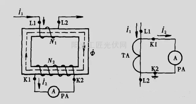 如果互感器的一次回路接反,即一次侧L2流进,L1流出,即使二次接法正确,但电流方向正好是相反了,如果互感器二次回路接反,检测到的电流大小虽然不变,但相对于正常情况,因为参考的电路方向固定不变,而测量电流极性与正常时相反,所以电流流向也会相反,相位上会相差180度,会带来防逆流控制的判断带来误动作,也就是说即使光伏发电功率小于负载使用功率,防逆流控制器也会错误地判断系统中有逆流发生。
