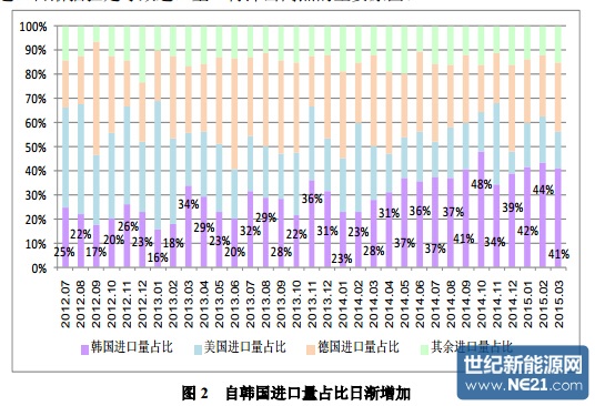 一、对于韩国最大多晶硅生产企业 OCI 征收 2.4%的反倾销税对其根本不造成任何影响,故韩国向中国出口多晶硅无论按照一般贸易方式还是加工贸易方式都毫无顾忌,3 月份从韩国进口多晶硅量达到 4224 吨,占当月总进口量的41.0%,依旧位居进口量首位,并遥遥领先于位居第二位的德国。因此,自韩国进口日渐猖狂是导致进口量一再冲击高点的主要原因。