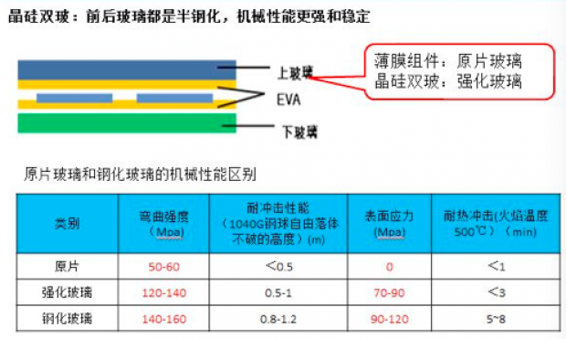 “我们的双玻组件采用2.5mm+2.5mm钢化玻璃设计,加起来就是5mm的厚度,相较传统3.2mm玻璃的组件来说,抗冰雹能力更强。并且,这两面的玻璃结构对称,受力均匀,电池片处于中性层的位置,能够得到更好的保护。”天合光能销售总监曾义先生说道。