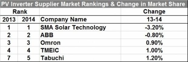 尽管基于收入SMA Solar依旧在光伏逆变器市场排名第一,但是2014年其份额下滑4%,连同另一家领先的欧洲供应商ABB。