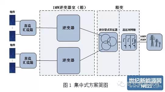 目前电站设计因所采用逆变器不同而分为两种方案:集中式逆变器方案与组串式逆变器方案。