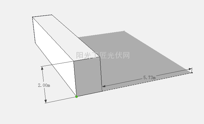 这里我们以上海(纬度31.2度)为阴影分析地点,2米高且与水平面竖直90度角的墙作为遮挡障碍物来分析,这里考虑到正南正北朝向太简单了,我们选用障碍物朝向为南偏西45度。如下图所示的模型: