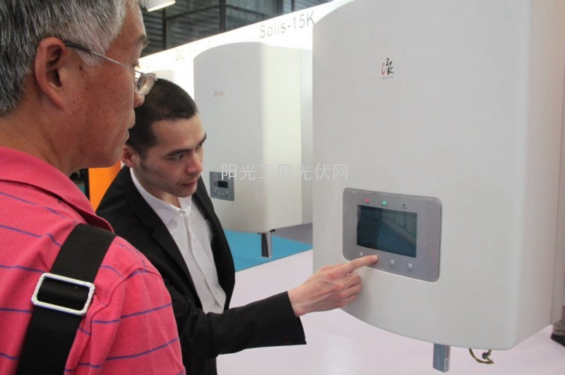 另外一亮点便是,锦浪于2015年成功上市的30kW、36kW系列并网逆变器,其突破性的拥有4路最大功率跟踪(MPPT)和7英寸大屏监控,使得光伏电站特别是屋顶分布式电站获得相比以往更高的发电效率。同时,新技术的应用把组串式逆变器与以往相比集中式逆变器最大的价格劣势磨平,锦浪带着“用集中式逆变器的价格买组串式逆变器”的愿景在本次展会重磅推出总量100MW规模的平价机销售,用匹配集中式逆变器的价格在展会上推出特价产品进行国内市场推广。在展会期间,所展示的36kWw机子也是业内人员驻足观看动手琢磨最多的产品之一。
