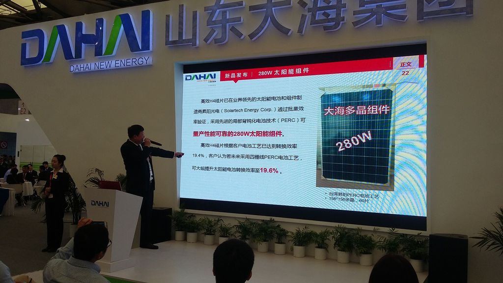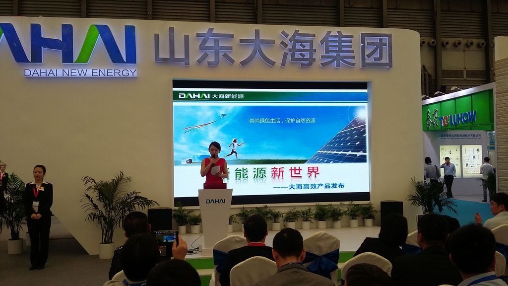 本次展会,大海新能源展厅占地面积达700余平方米,是所有参展商中面积最大、展厅设计标准最高、配套服务最全,得到来访客户、嘉宾的一致好评,现场展示的高效产品吸引了各大公司技术及采购人员的关注,特别是使用H4超高效片制作成的280W太阳能光伏组件独占鳌头,受到来访客户的青睐和高度赞扬,现场与有关客户达成了订单意向。