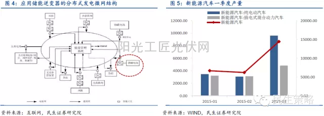 2) 用户侧,主要应用为商业储能,即企业级用户,工业园区采取储能装置实现并离网发电一体化;家庭储能,即居民采用“光伏+储能”方式实现家用新能源分布式发电;新能源汽车,有车必有桩,带动充电基础设施发展。