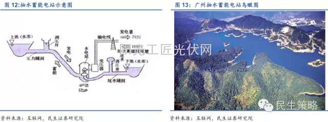 利用地势差异抽水储能。抽水蓄能技术主要依靠上下游的地势差异,将低谷时期的过剩电力以水作为媒介,将水从地势低的地区抽到地势高的地区储能,高峰用电期放水输能。其效率在75%左右,优点主要为大功率,大容量,低成本,劣势主要在于对地势的依赖性较强,并且受我国抽蓄电价的制约。