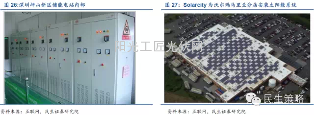 Solarcity实际上是特斯拉的兄弟公司,其背后的企业家便是特斯拉“掌门人”马斯克。14年末,Solarcity与沃尔玛签订了新的太阳能和储能项目合同,在未来四年内将为沃尔玛36个州的网点安装具有储能装置的太阳能屋顶系统。“光伏+储能”的自发电方式将为沃尔玛实现离网供电,有效降低电力成本。