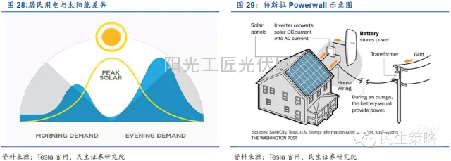 “光伏+储能”离网发电。家庭储能系统一般于家用光伏发电结合,实现“光伏+储能”离网发电。一般居民用电的高峰期主要在早晨起床及晚上,但在白天太阳能充足的时间段,用电量却较少。因此家庭储能系统可以日间采集并存储太阳能实现高峰电力负荷转移。目前,家庭储能主要在德国、日本、美国等地较为成熟,德国对于家庭光伏有2500万欧元资助,最高可抵减储能系统安装成本的30%,而日本大约80%的分布式光伏安装于个人住宅。