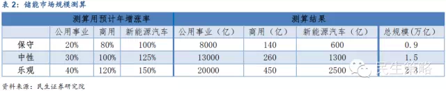 1) 基本面来看,经估算,我国储能市场装机容量(将于2020年达到400MW,输配侧有望率先爆发,公用事业、商业、家庭三点发力,市场空间万亿。