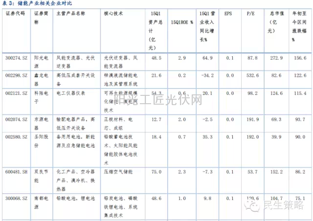 储能产业成长空间大,政策刺激下成长板块弹性较大。储能企业相关概念股票在15年一季度营业收入同比增速不俗,显示了产业内亟待爆发的成长潜能。与上证综指对比,在牛市中由于能源互联网风头正劲,相关概念股年初至今涨幅均有不俗表现,但部分个股或仍存在补涨需求。除此之外,储能产业中相关个股大多为成长股,弹性较大,市值发展空间大,在未来政策预期向好,题材股风头正劲的情况下,有进一步上涨空间。