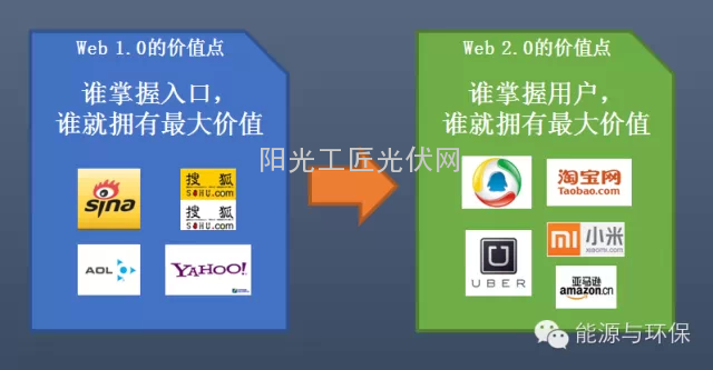 那么,从Web1.0到Web2.0的价值重心转移则如下图。