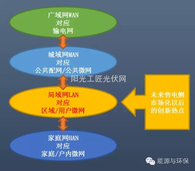 若用计算机网络分级去理解的能源互联网构成,则如下图。
