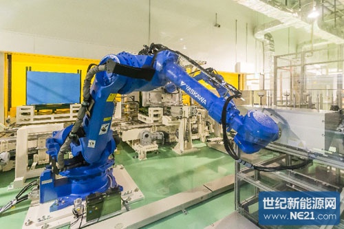 东北工厂的生产线。用机器人投入玻璃基板(摄影:Solar Frontier)索比光伏网 https://news.solarbe.com/201505/20/190544.html