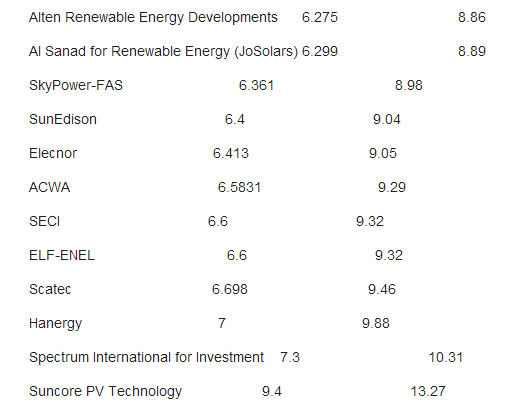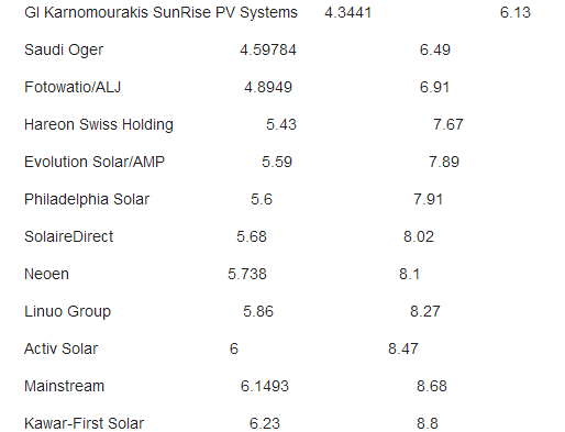 MESIA表示,另外一家排名前四的投标商,中东Fotowatio/ALJ,由于来自沙特阿拉伯Abdul Latif Jamil(ALJ)强劲的资金支持以及Fotowatio强大的IPP经验,可能成为“非常积极的”大型太阳能IPP。SaudiOger,另一家沙特公司,也位于前四,MESIA预计两家沙特公司都将在未来成为领先的太阳能参与者。
