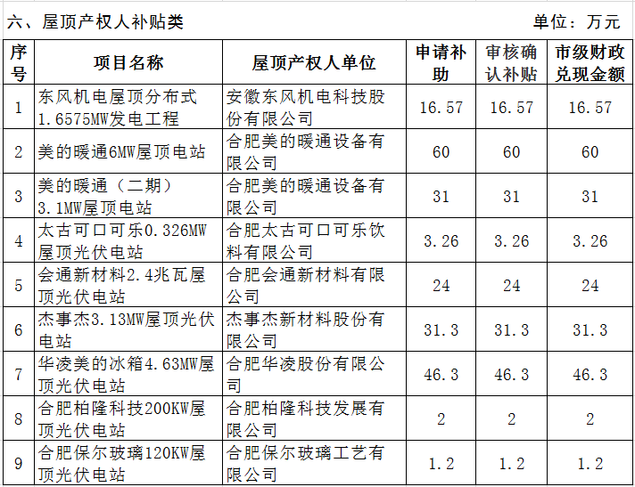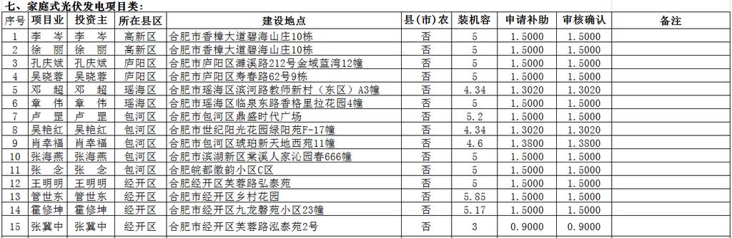 原标题:关于合肥市2015年度光伏推广应用(第一批)政策兑现的公示