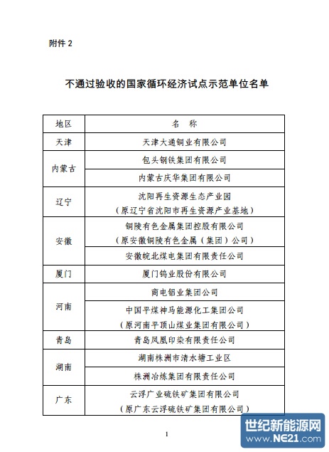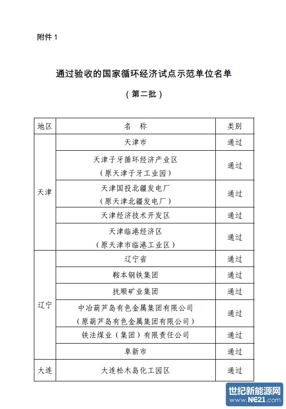 附件:1、通过验收的国家循环经济试点示范单位名单(第二批)