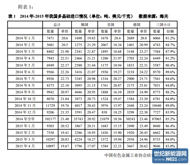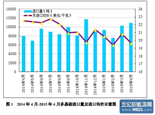 有色协会硅业分会认为,致使 2015 年 4 月份多晶硅进口量持续过万的主要原因有: