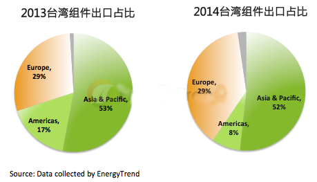 林嫣容表示,以目前组件限价按欧元贬值后调整在EUR0.56、电池片限价EUR0.28来看,都仍属目前较高价的区域,然台湾输往欧洲的组件及电池片却仍遭受低价竞争,显示“限价”确实仍有许多漏洞待补。EnergyTrend统计显示,台湾电池片及组件出口至欧洲比重占二至三成,其中以直接出售给客户为大宗,尤其欧洲过去为高效产品的主要需求区域之一,电费昂贵也将刺激欧洲分散型市场稳定提升,未来仍持续是台厂较有优势的高效产品之目标市场。
