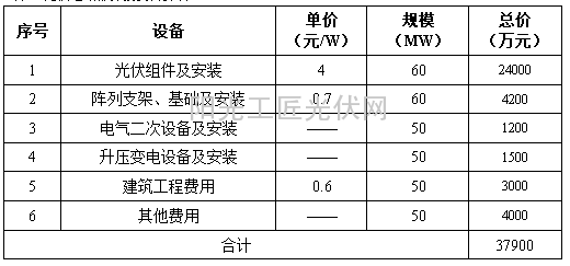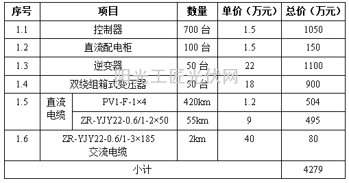 8)除从“汇流箱~箱变”之外,其他设备造价估算如下表。