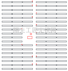 22块260W光伏组件组成1个串联之路,每个方阵为2个并联支路;104个方阵组成一个1.19MW的发电单元。整个光伏电站由50个发电单元组成,总容量为59.488MW。