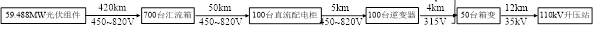 再以450~820V的直流电压用ZR-YJY22-0.6/1-2×50电缆汇入2台直流配电柜,之后以450~820V的直流电压用ZR-YJY22-0.6/1-2×50电缆汇流进入2台500kW逆变器,转化为315V的交流电后,用ZR-YJY22-0.6/1-3×185汇入一台1000kVA的箱式变压器。