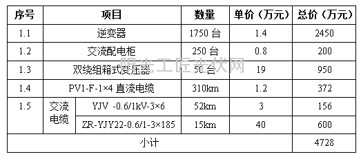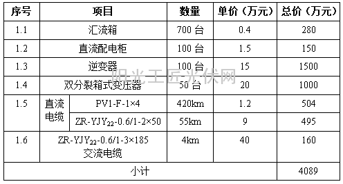 说明:上述费用不包含汇流箱、直流配电柜、逆变器、箱变、直流电缆、交流电缆等费用。