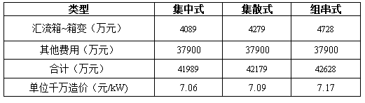 需要说明的是,上述方案是基于特定的典型项目进行计算的。如果项目场址变更到南方地区,阵列间距变小,则组串式、集散式的线损较小优势则会不明显;如果“光伏组件:逆变器”不按1.2:1考虑,则集中式的造价低优势将更加明显。因此,在实际工程中,要根据自己的项目情况进行技术经济比较后,再确定技术方案。