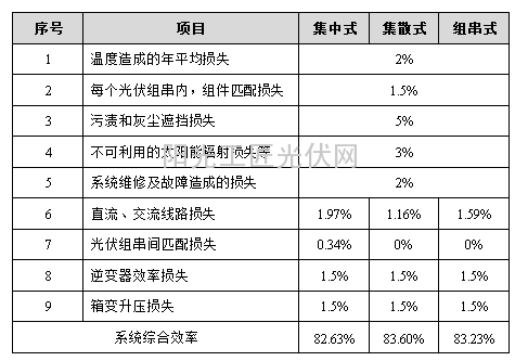 综上所述,采用不同型式逆变器,造成的PR值差异如下表。