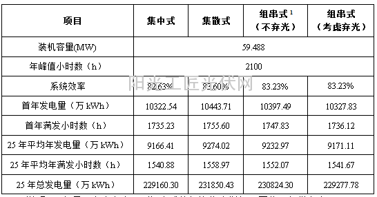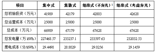 说明1:如果不考虑弃光,则组串式的投资将会增加,因此费用会增加。