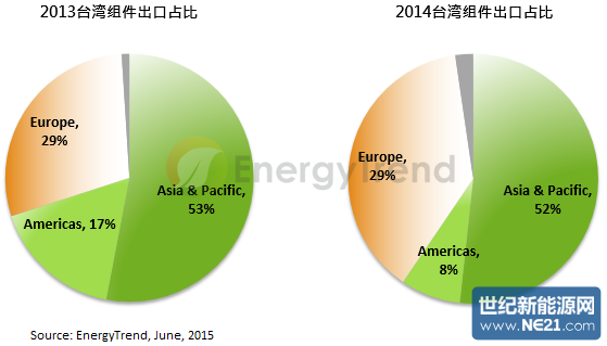 林嫣容表示,以目前组件限价按欧元贬值后调整在EUR0.56、电池片限价EUR0.28来看,都仍属目前较高价的区域,然台湾输往欧洲的组件及电池片却仍遭受低价竞争,显示「限价」确实仍有许多漏洞待补。EnergyTrend统计显示,台湾电池片及组件出口至欧洲比重占二至三成,其中以直接出售给客户为大宗,尤其欧洲过去为高效产品的主要需求区域之一,电费昂贵也将刺激欧洲分散型市场稳定提升,未来仍持续是台厂较有优势的高效产品之目标市场。