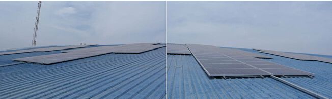 该系统的太阳能电池组件安装在Asian工厂织布车间的铁皮屋顶上,直流配电箱安装在屋顶矮墙内侧,光伏逆变器及交流配电箱安装在车间侧门过道上方的阁楼墙面上。