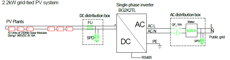 索比光伏网讯:广东中山霍尼韦尔2.2KW光伏项目并网发电,该发电系统安装在霍尼韦尔朗能电器厂区内,系统由东莞市天利太阳能有限公司完成设计及施工。选用了东莞市天利太阳能提供的10块230Wp的单晶硅太阳能电池组件,10串1并倾斜安装在保安亭的屋顶上,逆变器安装在保安亭旁边比较醒目的位置,同时还安装有交流并网柜(交流配电箱)。光伏并网逆变器采用是深圳英威腾的iMarsB系列2.2kW光伏并网逆变器。