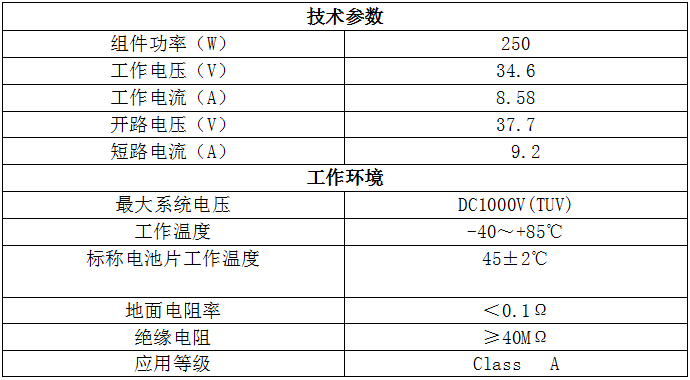 太阳能组件的参数如下: