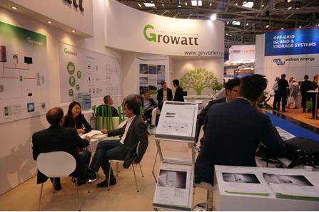 索比光伏网讯:日前,欧洲规模最大的太阳能展会——2015德国慕尼黑国际太阳能技术贸易展览会(Intersolar Europe 2015)正如火如荼地进行当中。随着2015年全球光伏市场加快复苏的步伐,今年的展会规模更胜去年,而作为德国展会的常客,中国最大的逆变器出口企业——深圳古瑞瓦特新能源股份有限公司本次携多款逆变器新产品粉墨登场,再次成为海内外参展观众眼中的焦点。