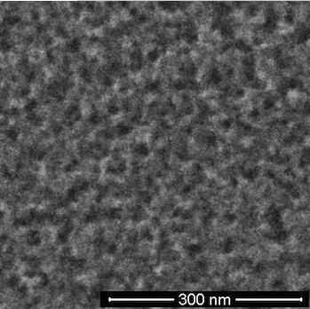 电子显微镜影像显示在用于太阳能电池的芯片表面上快速制作出可吸收光线的精细突起与孔隙。莱斯大学研究人员开发出在黑硅工艺中兼负双重任务的金电极——作为催化剂加速表面蚀刻。