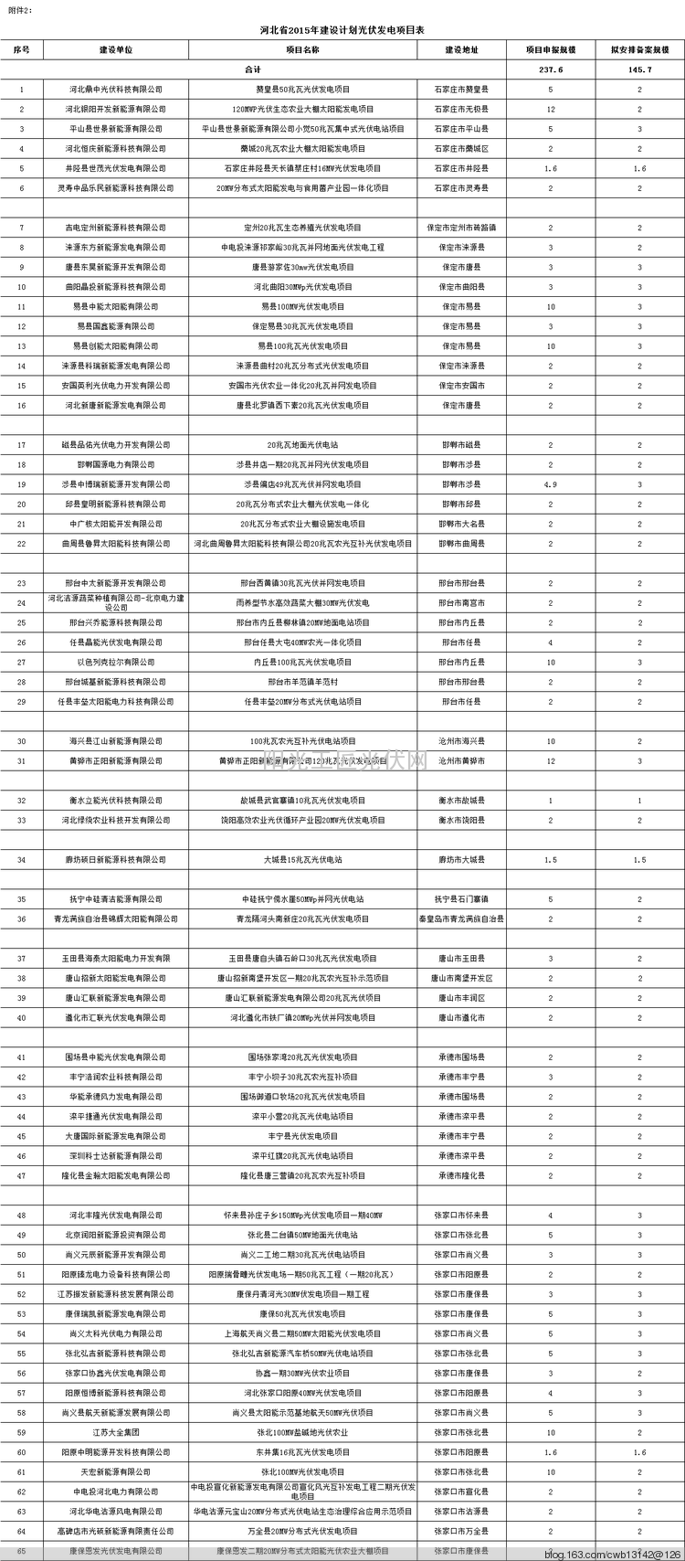 2015年,全省共安排光伏发电建设计划项目67个,备案装机规模147.7万千瓦(附件)。