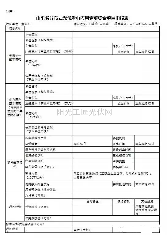 附件4 山东省分布式光伏发电应用专项资金项目申报表.xls