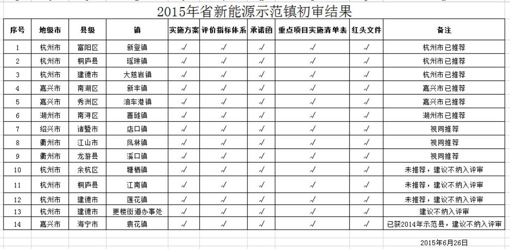 1、浙江省2015年可再生能源发展专项资金初步审核结果
