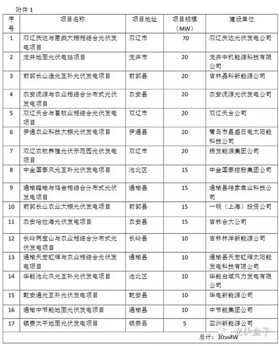 1.2015年吉林省光伏电站新增建设项目计划表