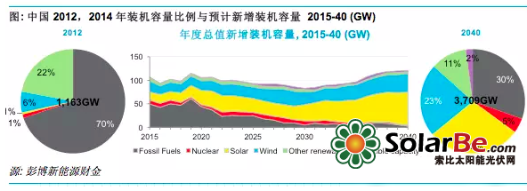 2.到2040年,中国接近三分之二的装机容量将来自可再生能源